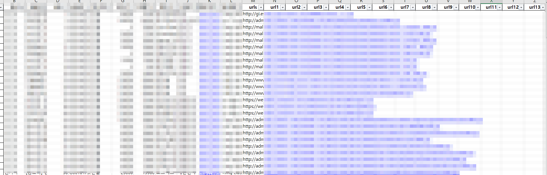 각 cell 별로 가지고 있는 max개의 url list를 펼쳐서 링크 확인을 하기 위해서 최대 url 보유갯수를 기준으로
