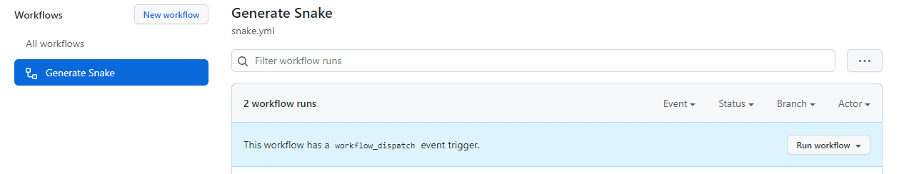 repository 가셔서, actions를 눌러주시면 밑에 generate snake가 나옵니다.